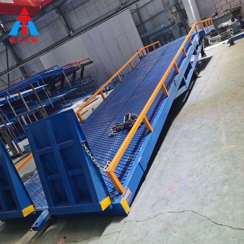 移動式液壓登車橋采用中德合資技術(shù),按承載能力分為:6、8、10、12、20噸,廣泛應(yīng)用于無裝卸設(shè)備的貨臺及流動裝卸場所,是與叉車配合使用的貨物裝卸專用輔助設(shè)備。有了它,叉車能直接從地面駛?cè)肫囓噹麅?nèi)部進行批量裝卸作業(yè)。產(chǎn)品采用人工液壓動力,不需接動力電源。只需單人操作,即可實現(xiàn)貨物的安全快速裝卸。它可使企業(yè)減少大量勞動力,成倍提高裝卸作業(yè)效率,加快貨物流通速度,獲取更大經(jīng)濟效益。