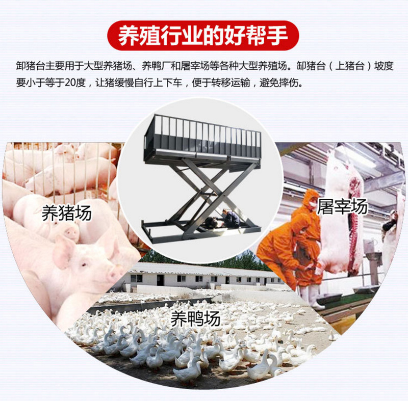 產(chǎn)品介紹:卸豬臺(tái)大型養(yǎng)豬場、養(yǎng)鴨廠和屠宰場等各種大型養(yǎng)殖場專用的液壓裝豬設(shè)備。