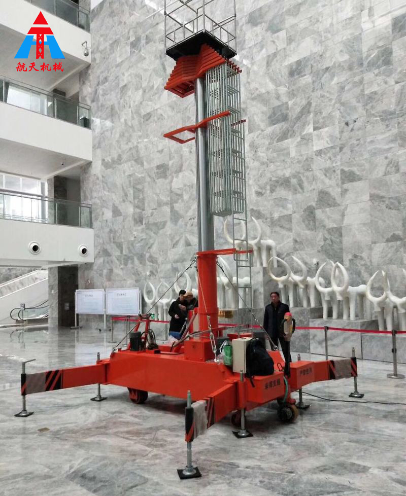 套缸式升降機(jī)是一種多用途的高空作業(yè)機(jī)械,其功能將載有作業(yè)人員和使用器材的平臺(tái)送到指定高度進(jìn)行空中作業(yè)的特種工程設(shè)備。這種設(shè)備被廣泛用于工礦車間、高大廳堂、倉庫、車站、廣場等高空作業(yè)。整機(jī)由平臺(tái)、伸縮油缸、單梯式或雙梯式防轉(zhuǎn)機(jī)構(gòu)、底盤油箱、支腿、行走輪等組成。