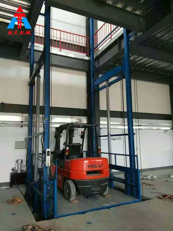 導(dǎo)軌式汽車升降平臺,主要用于樓層間高空貨物運輸。載重1-50噸,升高高度1-25米。室內(nèi)、室外均可安裝導(dǎo)軌式升降機也叫做液壓提升機,提升高度高,采用旁置油缸,運行平穩(wěn)、噪音低、維修方便、使用壽命較長,停電時,可使用手動應(yīng)急下降,安全、方便、快捷、實用,地坑深度一般為15cm-30cm,頂層高度不受限制,可根據(jù)現(xiàn)場環(huán)境定做用,適合2-3層鋼結(jié)構(gòu)或混凝土廠房,內(nèi)外部均可使用。