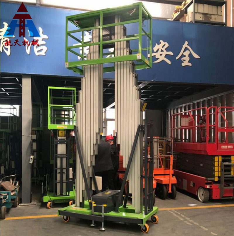 鋁合金式升降機是移動設備,采用了鋁合金型材,由于型材強度高,使升降機的偏轉(zhuǎn)與擺動小。它輕盈的外觀,能在小的空間內(nèi)發(fā)揮高的作業(yè)性能。使單人高空作業(yè)變得輕而易舉,可以移動進行作業(yè)。