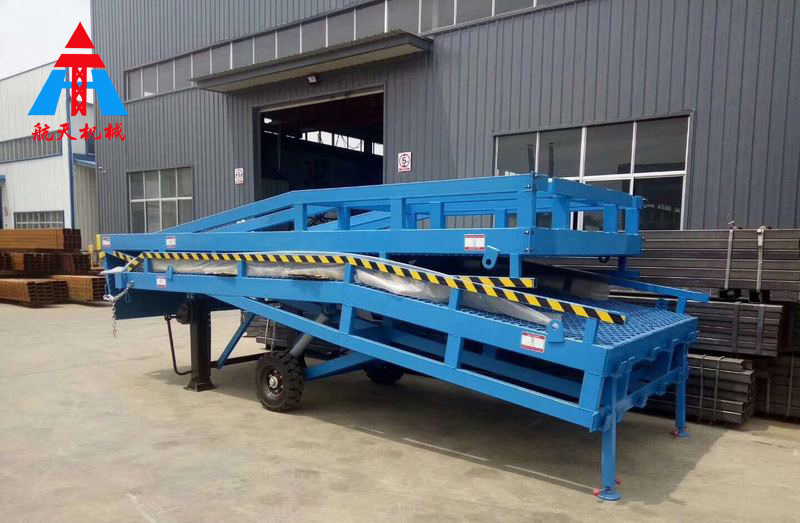 移動式登車橋在現(xiàn)代物流現(xiàn)場已是非常易見的結(jié)構(gòu)形式,它是企業(yè)物流鏈的起點(diǎn)與終點(diǎn),是企業(yè)快速、安全周轉(zhuǎn)產(chǎn)品及貨物的一個裝卸貨操作平臺。裝卸貨操作平臺的高度固定,但來往運(yùn)輸車廂的廂地高度不一,運(yùn)輸車輛與裝卸貨站臺之間總是形成一定的高度落差或間隙。造成搬運(yùn)叉車不能進(jìn)出運(yùn)輸車輛直接裝卸貨物,運(yùn)用登車橋提供可靠的連接。使搬運(yùn)叉車能夠安全、快速地進(jìn)出運(yùn)輸車輛進(jìn)行裝卸貨作業(yè),使用過程平穩(wěn)可靠,安全性能高,裝卸貨物時節(jié)約了大量時間,省卻了大量人力,使裝卸貨物大大的提高了效率。臺面采用特制的菱形網(wǎng)格板有可靠的強(qiáng)度,能保證長期使用而不變形。它的菱形網(wǎng)狀結(jié)構(gòu),充分保證了防滑性能,使叉車有更好的爬坡性和可操縱性,即使在雨、雪天氣,仍能保證正常使用。