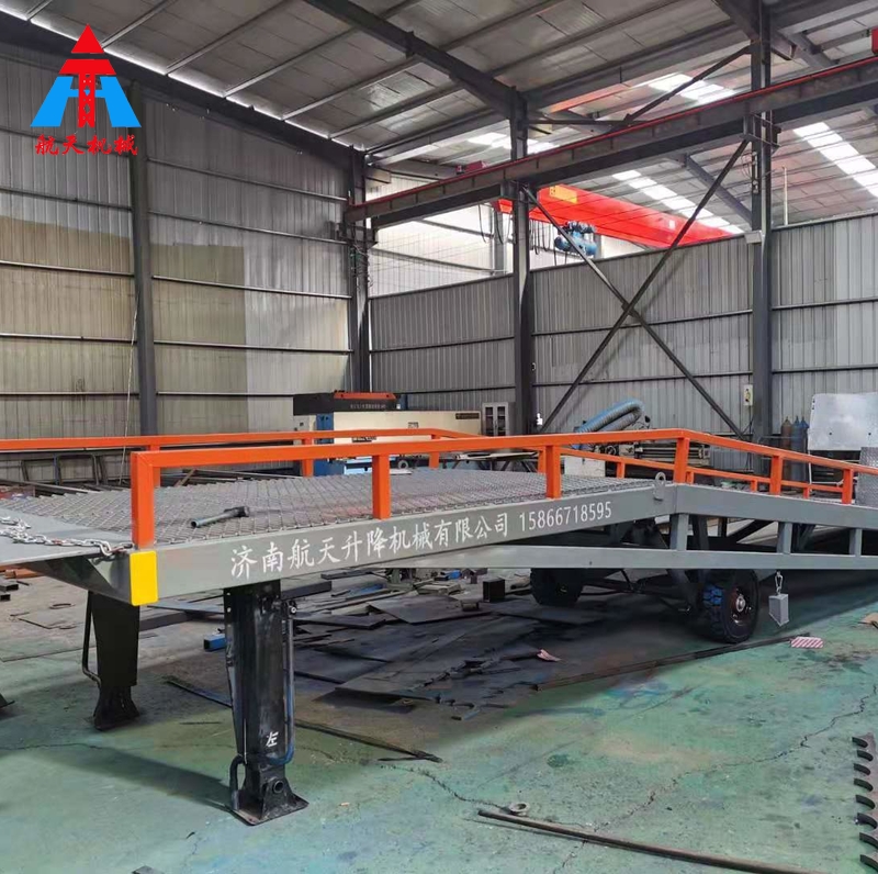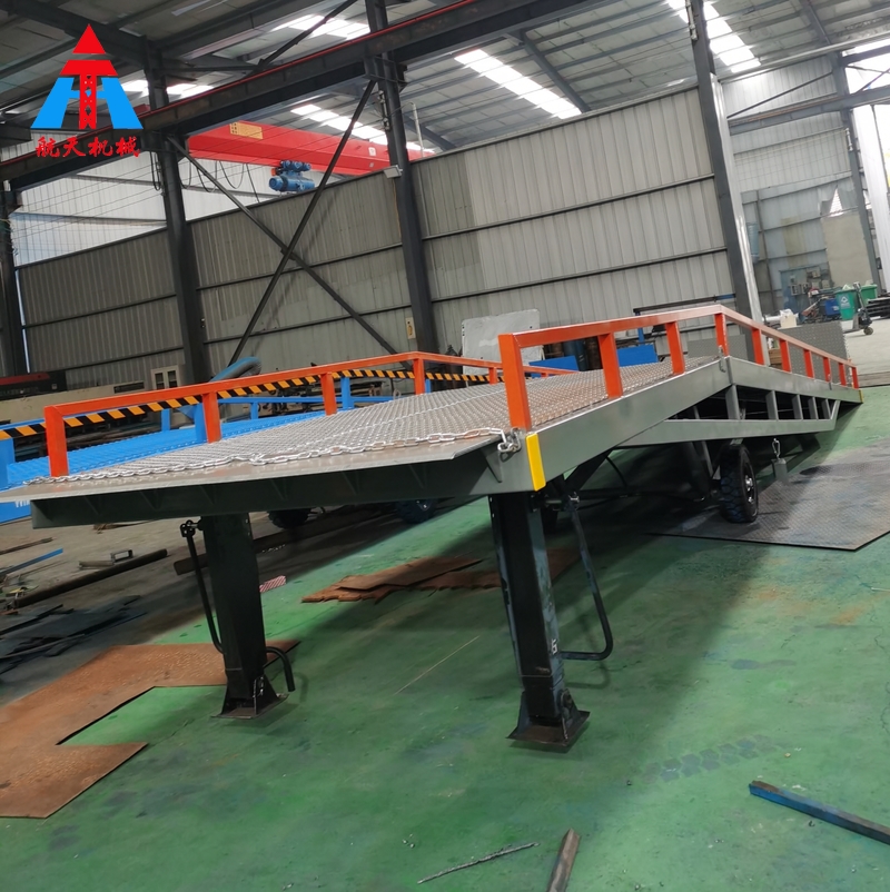 移動(dòng)式液壓登車(chē)橋是與叉車(chē)配合使用的貨物裝卸輔助設(shè)備,可根據(jù)汽車(chē)車(chē)廂的高低調(diào)節(jié)高度,叉車(chē)可以直接通過(guò)本設(shè)備駛?cè)胲?chē)廂內(nèi)部進(jìn)行貨物的批量裝卸,僅需單人作業(yè),即可實(shí)現(xiàn)貨物的快速裝卸。它使企業(yè)減少大量勞力,提高工作效率,獲取好的經(jīng)濟(jì)效益。