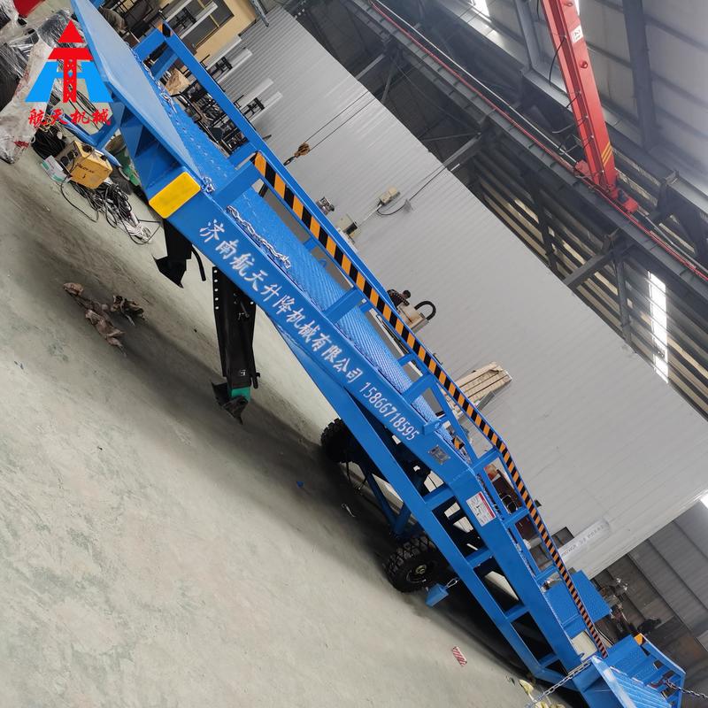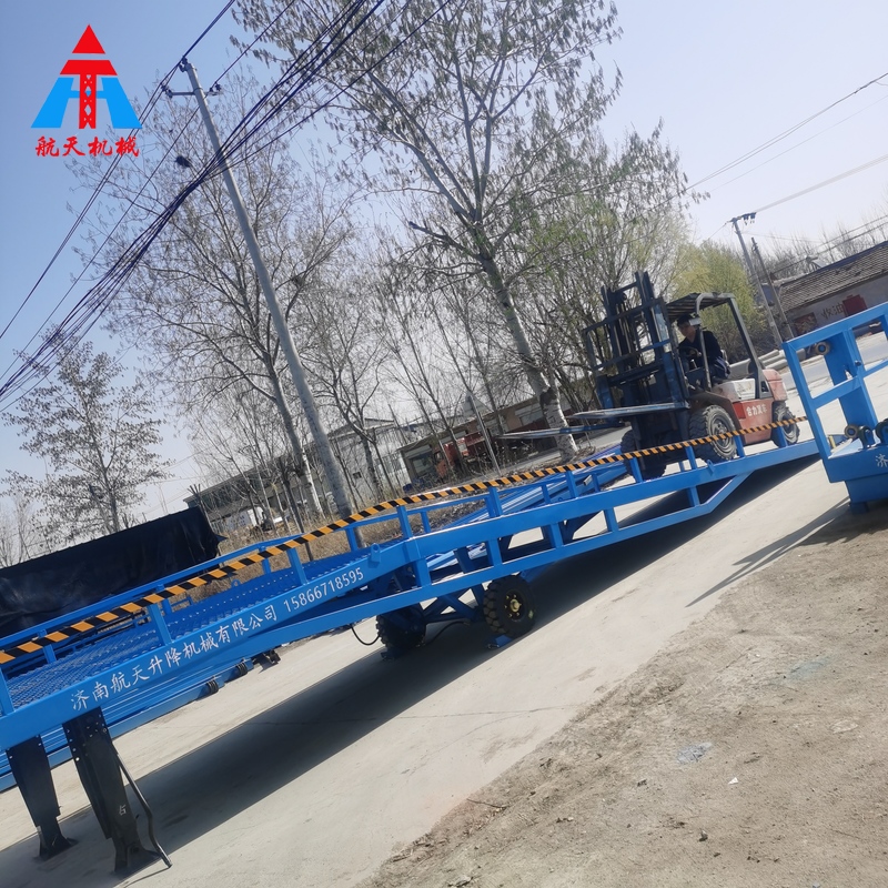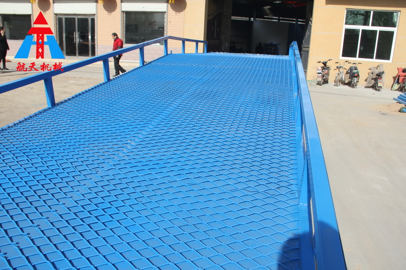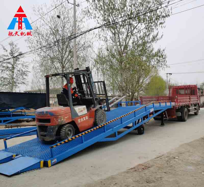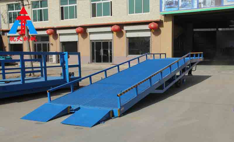 移動液壓登車橋是實現(xiàn)貨物快速裝卸的專用輔助設備,它的高度調(diào)節(jié)功能使貨車與庫房的貨臺之間架起一座橋梁,叉車等搬運車輛通過它能直接駛?cè)胴涇噧?nèi)部進行貨物的批量裝卸,僅需單人作業(yè),即可實現(xiàn)貨物的快速裝卸。移動液壓登車橋使企業(yè)減少大量勞力,提高工作效率,獲取好的經(jīng)濟效益。臺面均設計為網(wǎng)格狀鋼板,這種結(jié)構(gòu)能保證具有很好的強度,又具有防滑功能,還能方便地清掃工作臺面,使它能經(jīng)常地保持清潔、美觀。移動液壓登車橋無須外接電源,通過手搖泵做動力能輕松地在其整個調(diào)整范圍內(nèi)按50mm的倍數(shù)進行高度的調(diào)整,可以充分適應各種不同高度的貨車。