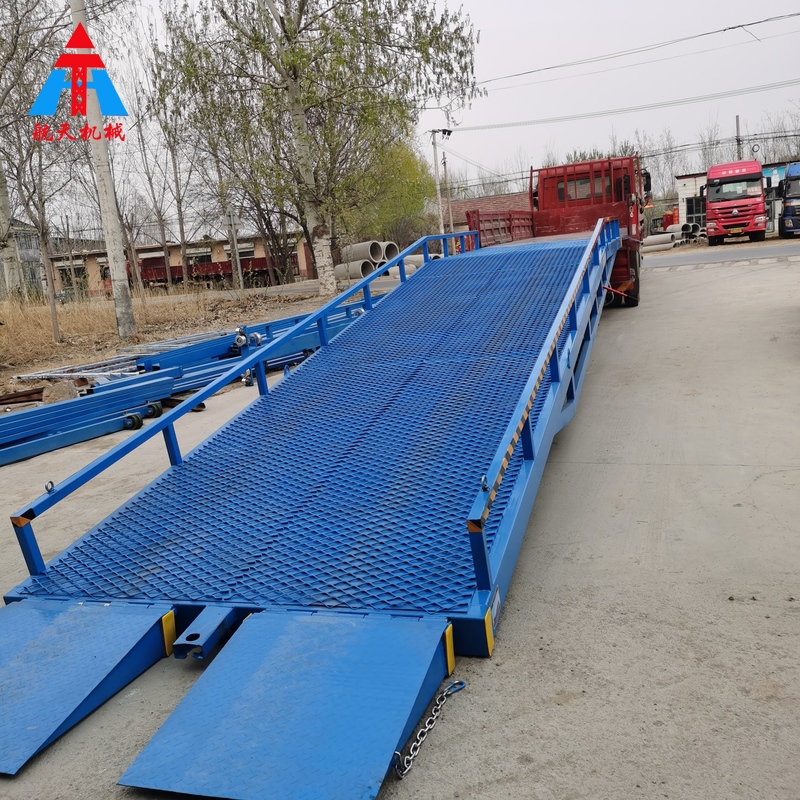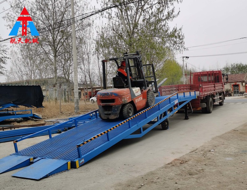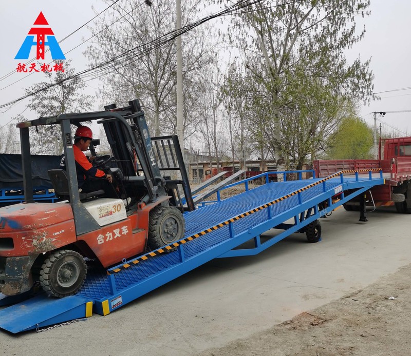 移動式液壓登車橋按承載能力分為:6、8、10、12、20噸,廣泛應(yīng)用于無裝卸設(shè)備的貨臺及流動裝卸場所,是與叉車配合使用的貨物裝卸專用輔助設(shè)備。有了它,叉車能直接從地面駛?cè)肫囓噹麅?nèi)部進(jìn)行批量裝卸作業(yè)。產(chǎn)品采用人工液壓動力,不需接動力電源。只需單人操作,即可實(shí)現(xiàn)貨物的安全快速裝卸。它可使企業(yè)減少大量勞動力,成倍提高裝卸作業(yè)效率,加快貨物流通速度,獲取更大經(jīng)濟(jì)效益。