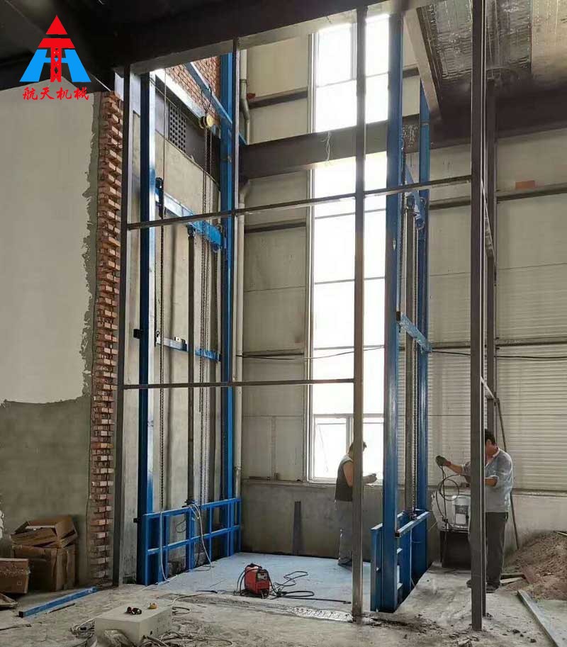 導(dǎo)軌式升降貨梯是一種非剪叉式升降平臺,適用于二三層工業(yè)廠房、餐廳、酒樓樓層間的貨物傳輸,低部高度在150-300mm,并且無須上部吊點。形式多樣化(單柱、雙柱、四柱),設(shè)備運行平穩(wěn),操作簡單可靠,具有液壓、電氣多種保護,貨物傳輸經(jīng)濟便捷。導(dǎo)軌式固定液壓升降機,廣泛應(yīng)用于工礦企業(yè)代替電梯提升貨物,具有結(jié)構(gòu)簡單、載重量大、使用壽命長、維護方便、安全實用等特點,尤其適用于帶井道地下無法挖地基的場所。