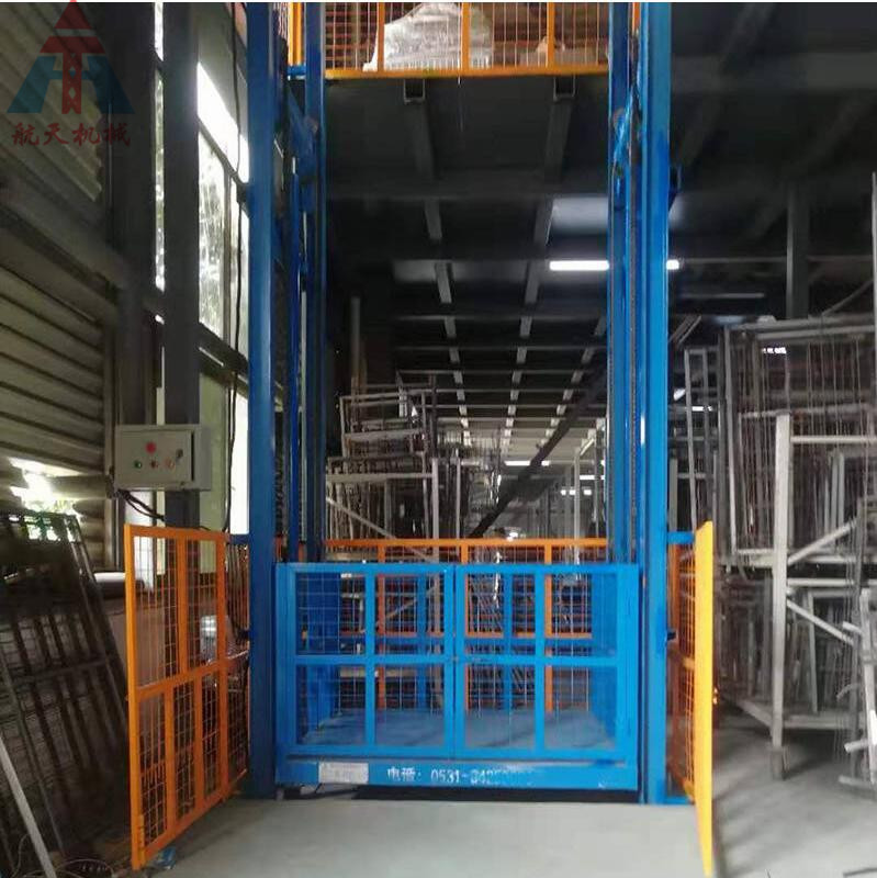導(dǎo)軌式升降貨梯是依靠液壓系統(tǒng)作為動(dòng)力單元,采用液壓油缸作為主要?jiǎng)恿?,通過(guò)電機(jī)驅(qū)動(dòng)液壓油泵,使油缸直頂,驅(qū)動(dòng)重型鏈條和油絲繩運(yùn)動(dòng),從而帶動(dòng)貨梯平臺(tái)在軌道間平穩(wěn)運(yùn)行,是用于建筑層樓間、廠房、工廠、倉(cāng)庫(kù)運(yùn)送貨物的專(zhuān)用液壓升降設(shè)備,起升高度從1米至20米不等,載重量從300公斤至30噸不等,是目前貨物運(yùn)輸?shù)妮^為理想的設(shè)備選擇。產(chǎn)品的安全性能是客戶選擇設(shè)備時(shí)綜合考慮的重要指標(biāo)之一,本廠生產(chǎn)的導(dǎo)軌式升降貨梯設(shè)計(jì)采用三重保護(hù),提高了產(chǎn)品的安全性,使客戶購(gòu)買(mǎi)安心、使用放心。