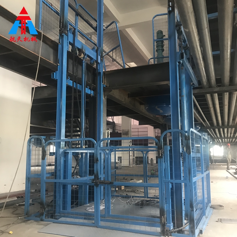 液壓升降貨梯是用于貨物升降的液壓升降機(jī)械設(shè)備,釆用液壓站作為主要?jiǎng)恿?,液壓油缸作為支撐,T型導(dǎo)軌作為軌道,通過特種鏈條和滾輪傳動(dòng),保證轎箱運(yùn)行安全穩(wěn)定。無需地坑和機(jī)房,特別適合于有地下室、倉(cāng)庫改造、新建貨架等,具有安裝維修方便、美觀、安全、操作方便,具體根據(jù)現(xiàn)場(chǎng)的實(shí)際環(huán)境生產(chǎn)。